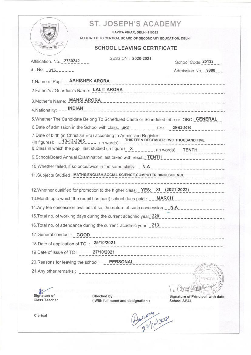 TC Class X (2021-22)
