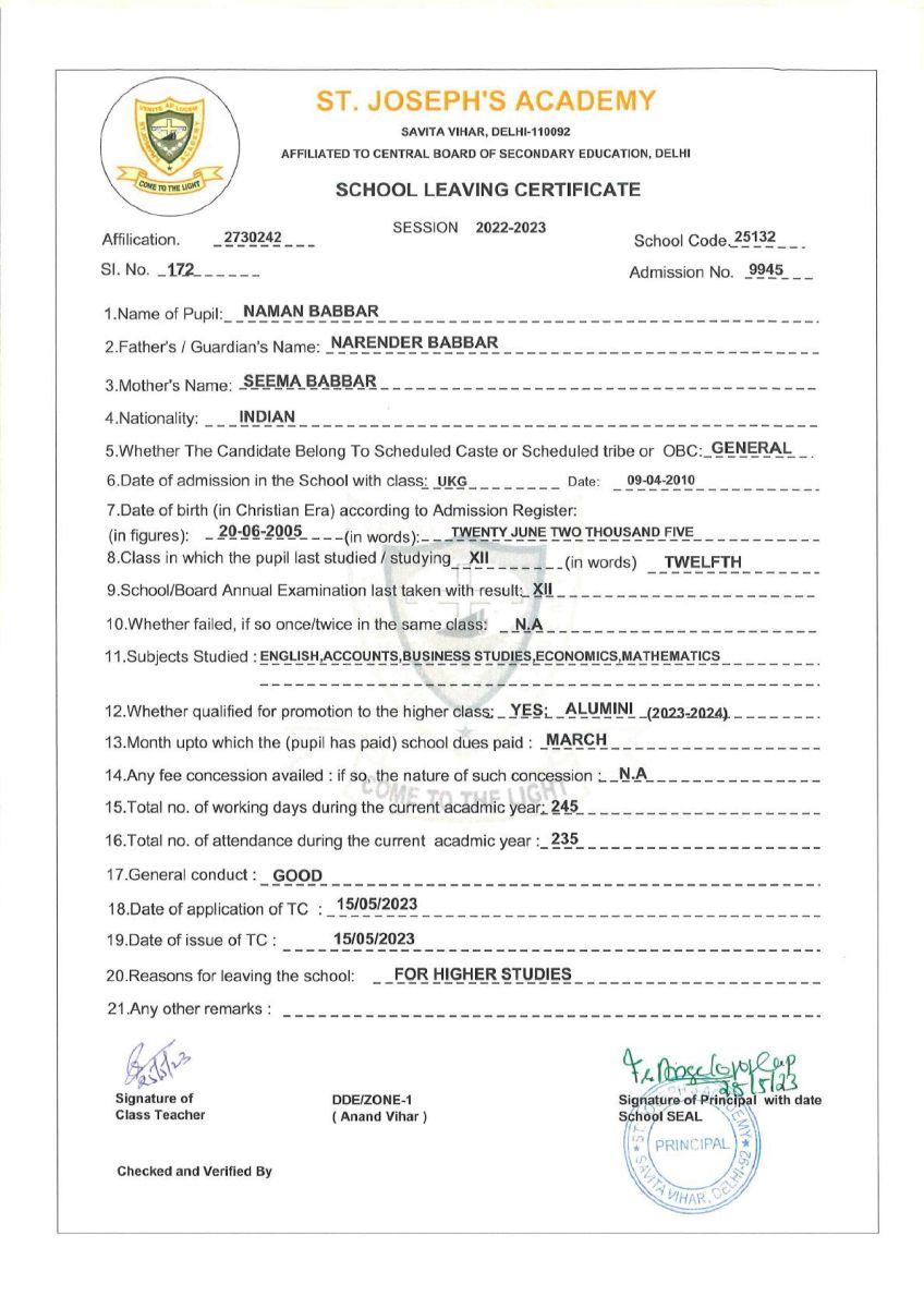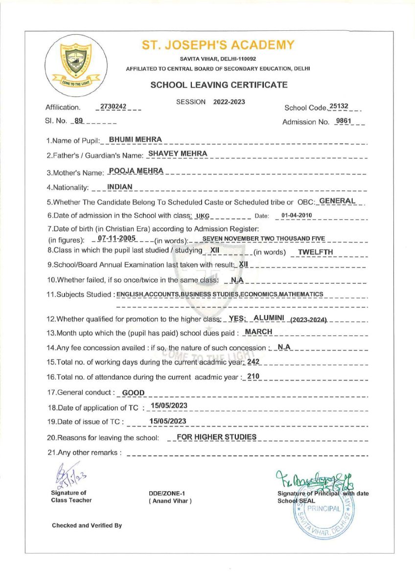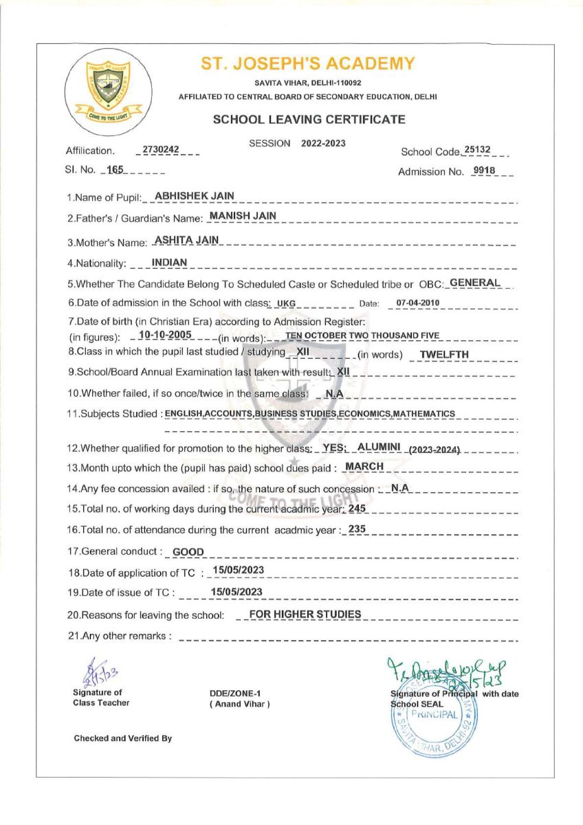 TC Class XII - E (2022-23)